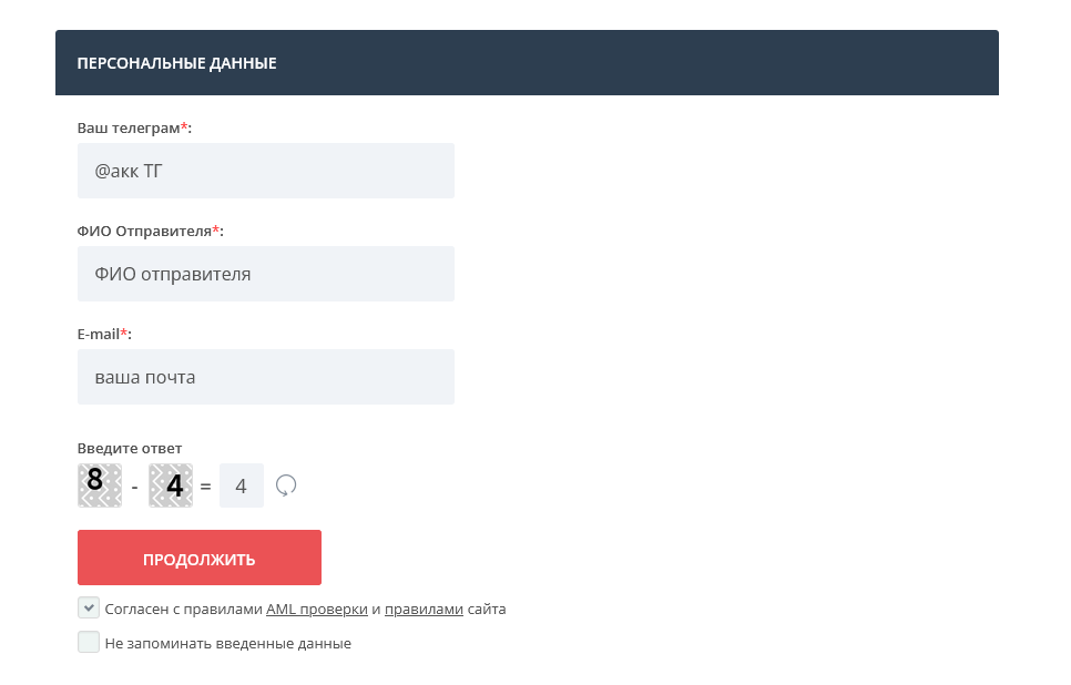 2. Заполните требуемые реквизиты. И нажмите "Продолжить"