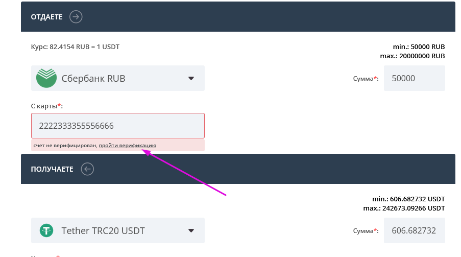 Ошибка может высвечиваться в двух вариантах как на скринах. В любом случае, нажмите на номер карты, для перехода к верификации.