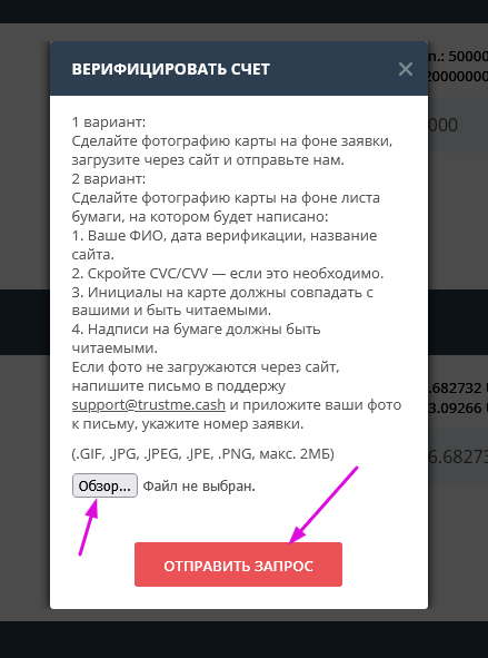 4. Загрузите фото для верификации. (прочитайте инструкцию).